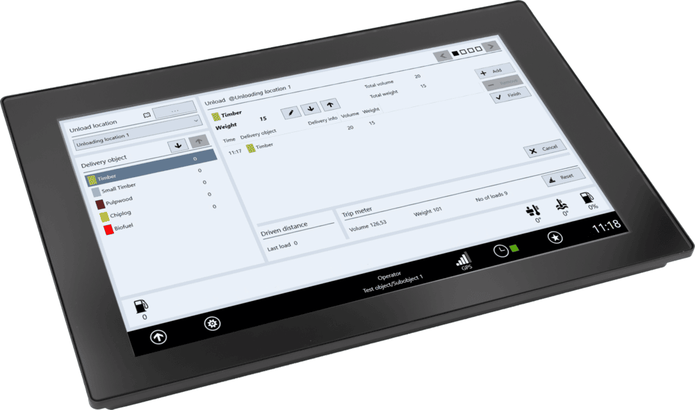 Dasa F30 receives logging and GPS data from the harvester which, when combined with the Dasa GeoInfo add-on software module, is used for optimizing the driving route and to secure that all logs are taken care of. Dasa F30 can operate in mixed fleets so it doesn’t matter if the logging data is generated by a harvester from a different brand. Alternatively, the Dasa F30 can receive its work instructions as specific StanForD2010-files such as FOI (Forwarding Object Instruction) and/or FDI (Forwarding Delivery Instruction).