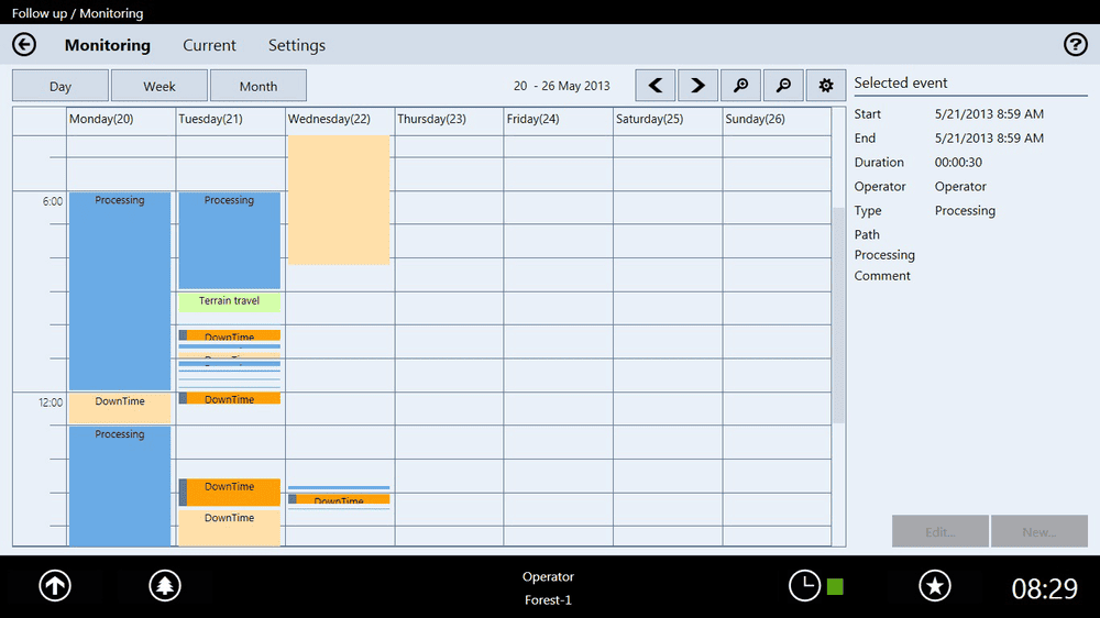 Dasa H60 has a modern and efficient user interface designed to be operated with the system’s touchscreen. Settings and other functions in the system are accessed via the main menu with a logical and intuitive navigation. If the operator needs guidance there is a built-in support function that is accessed via the question mark in the upper right corner. If there is a problem somewhere on the harvester, the visual diagnostic pages give a quick overview so that downtime can be avoided.